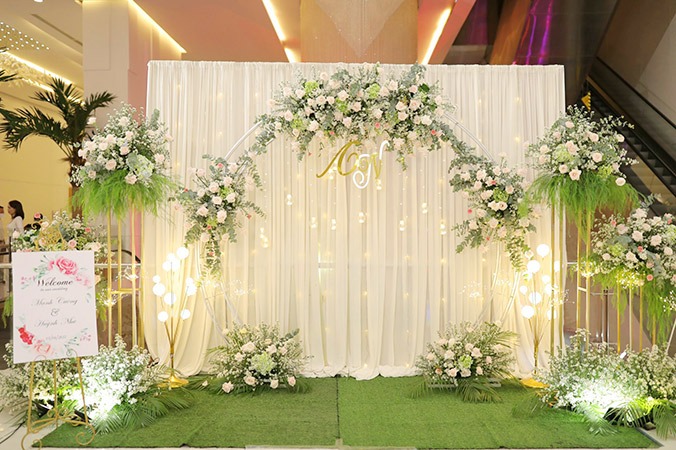 Trang trí hoa trên backdrop để chụp ảnh